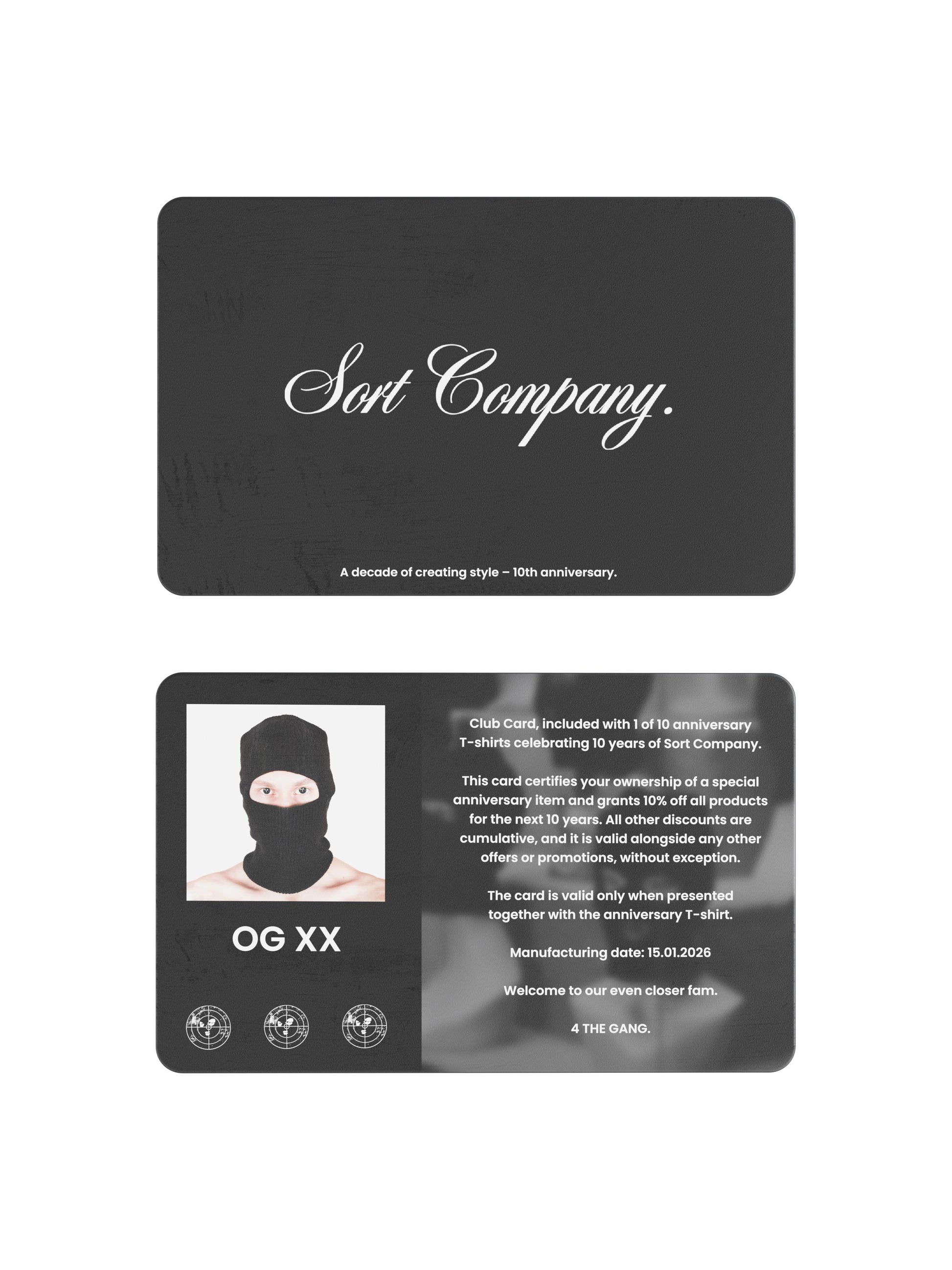 Each T-shirt comes with a plastic card certifies your ownership of a special anniversary item and grants 10% off all products for the next 10 years. All other discounts are cumulative, and it is valid alongside any other offers or promotions, without exception. The card is valid only when presented together with the anniversary T-shirt.